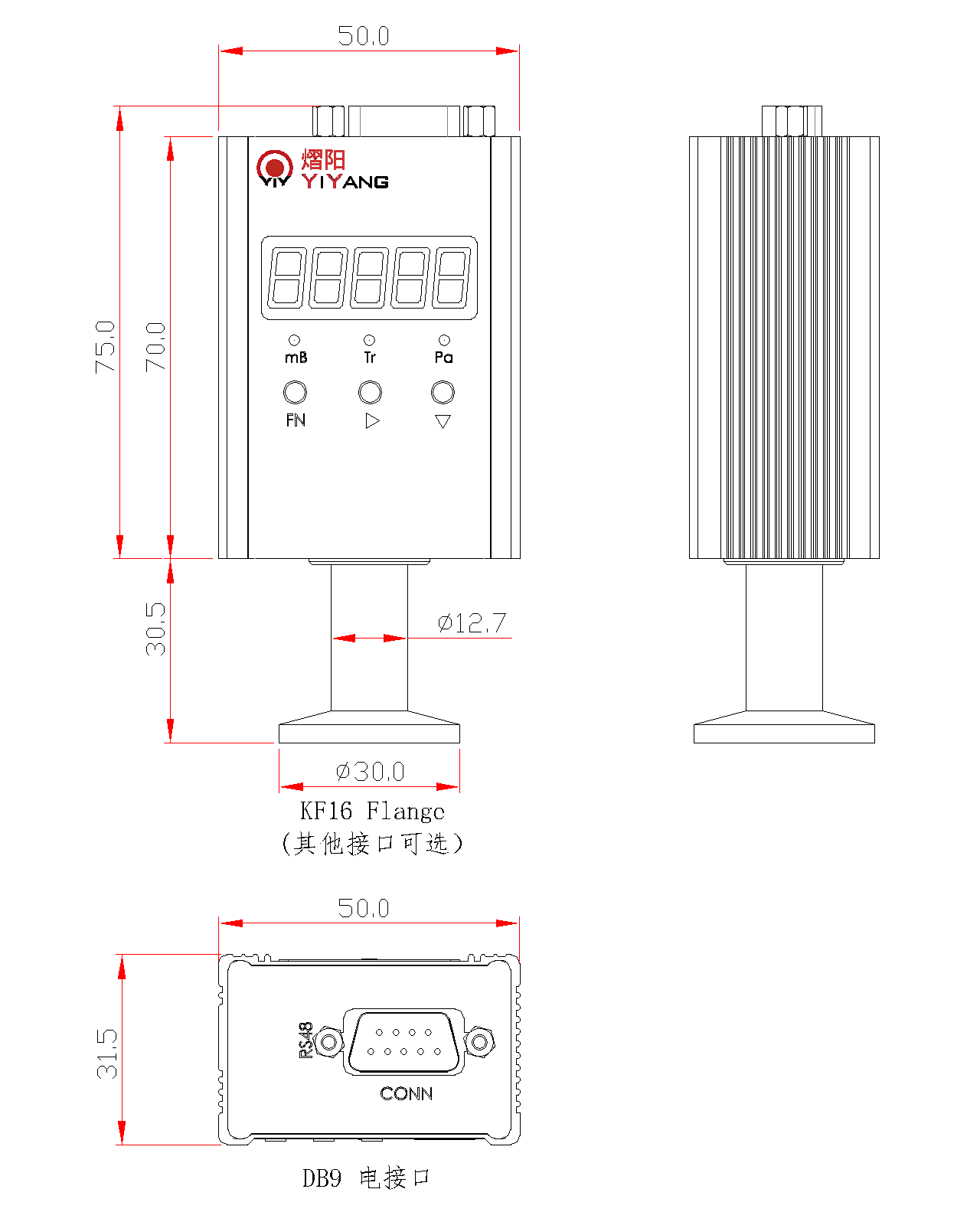 信号输出 5LED显示,单位Pa, Torr, mbar可选择